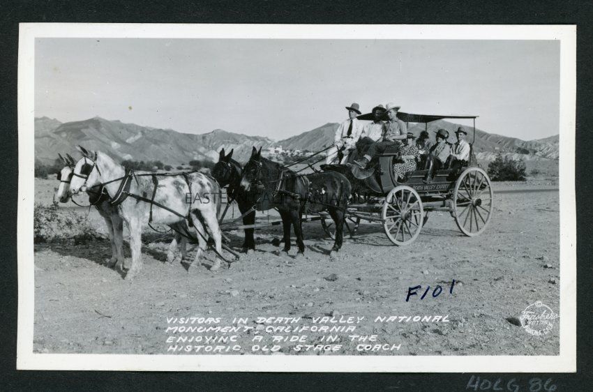 Visitors in Death Valley National Monument, California Enjoying a Ride in the Historic Old Stage Coach F101 Copyright Frashers Fotos Pomona Calif.