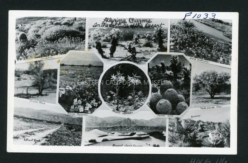 This item is a composite of several photos of sights around the desert, including plants, sand dunes, and the road.