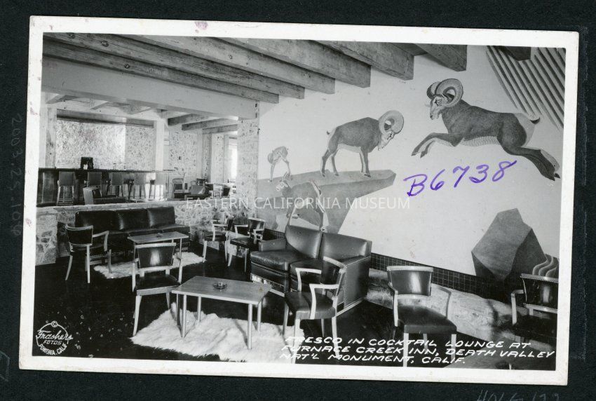 Fresco in Cocktail Lounge at Furnace Creek Inn Death Valley Nat'l Monument, Calif. B6738 Copyright Frashers Fotos Pomona Calif. Photo is detached from album page.