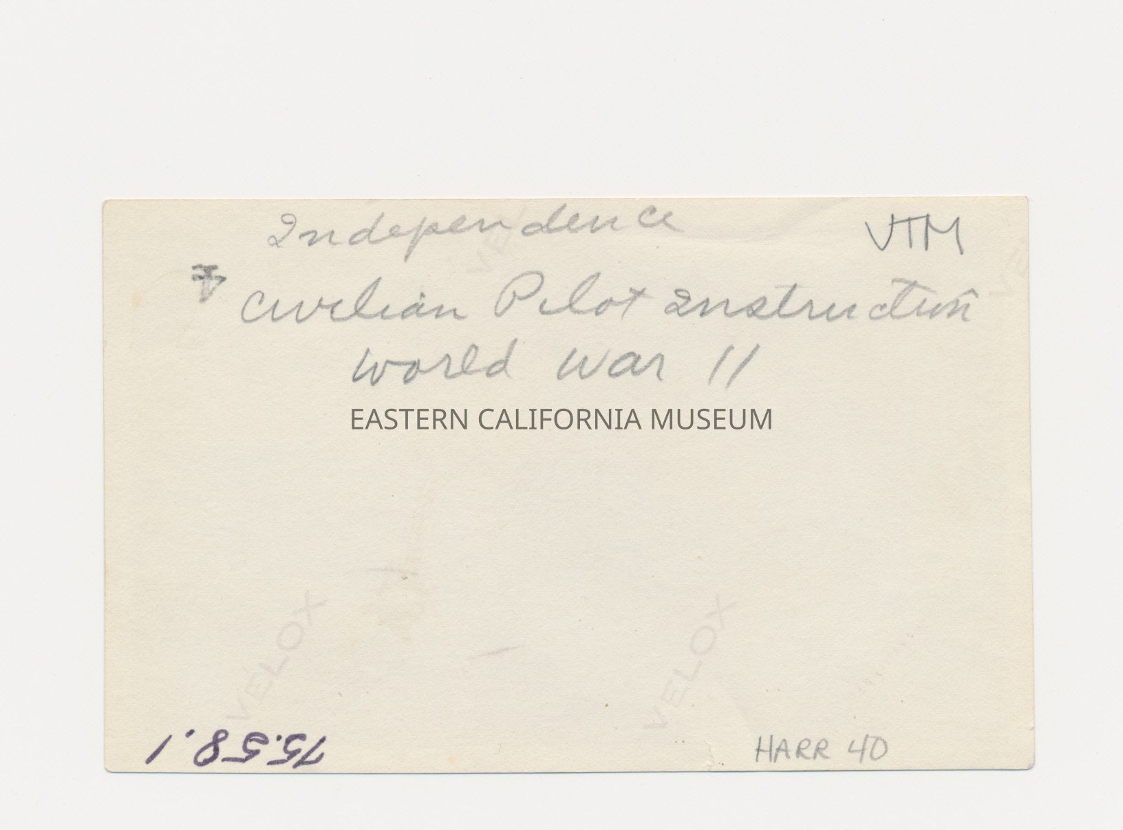 Written in pencil on reverse: Independence. Civilian Pilot Instruction, World War II.Collection