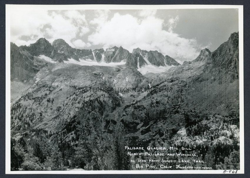 Palisade Glacier Mts. Sill North Palisade and Winchell as Seen From Summit Lake Trail Big Pine Calif. Frashers Foto Pomona A-968
