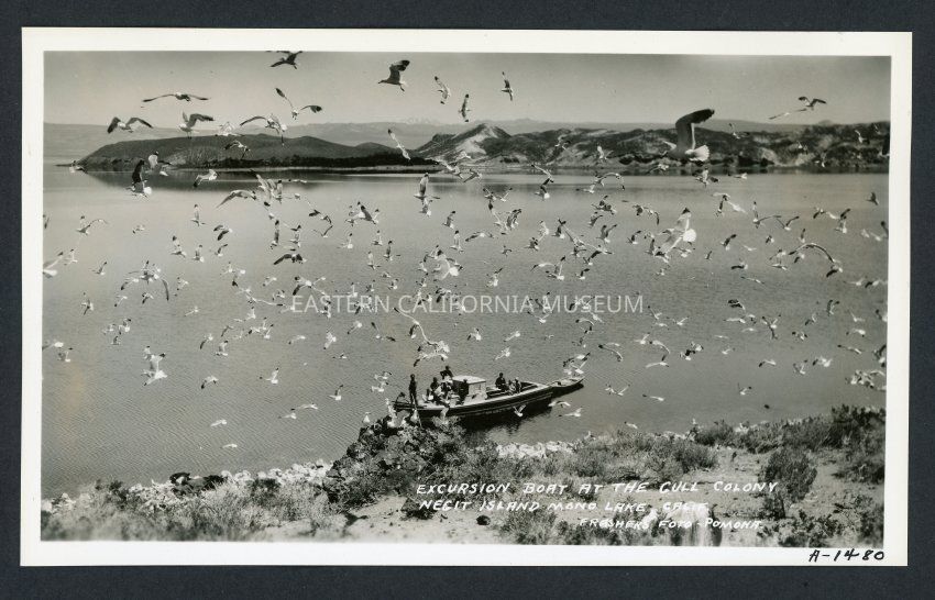 Excursion Boat at the Gull Colony Negit Island Mono Lake Calif. Frashers Foto Pomona A-1480