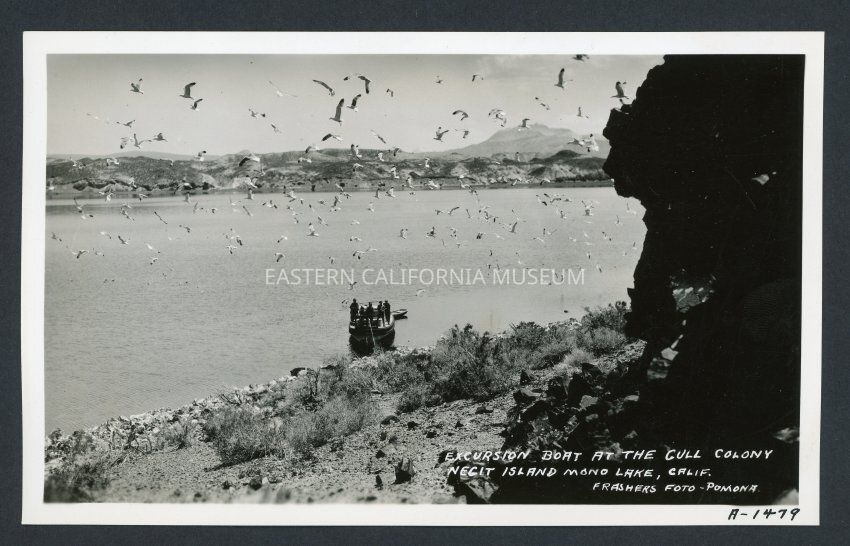 Excursion Boat at the Gull Colony Negit Island Mono Lake Calif. Frashers Foto Pomona A-1479
