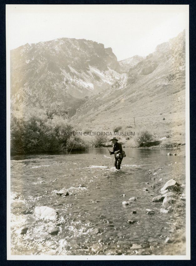 [No label, and it seems to have been skipped in the inventory.] [No label] [No number] Photo is of a man, possibly Burton Frasher, fishing in a creek.