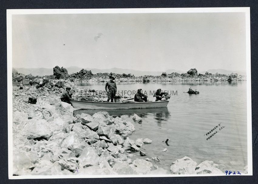[No label, but it is described in the inventory as "Men in boat Mono Lake."] Frashers Pomona Cal. 9822
