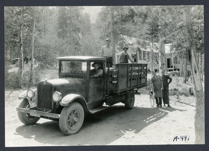 [No label, but it is described in the inventory as "Men in truck."] [No label] A-491 This is likely the Fern Creek Trout Hatchery near Carsons Camp.