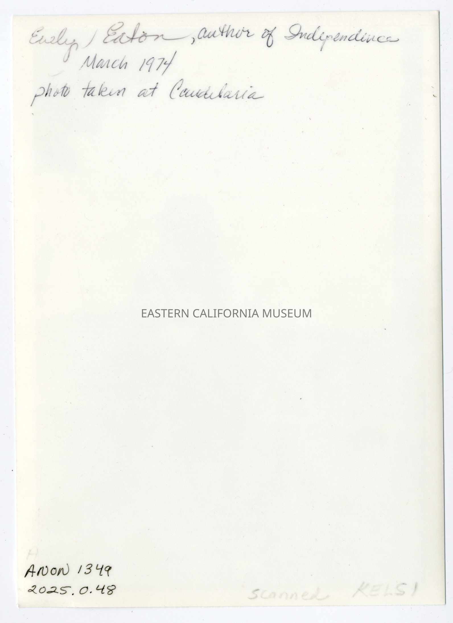 Written on reverse: Evelyn Eaton, author of Independence, March 1974, photo taken at Candelaria.Photograph Details