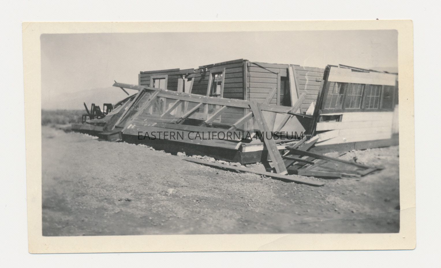 Photo of a house or structure with extensive damage. This is one of six photos of damage caused by a wind storm, likely in 1923.