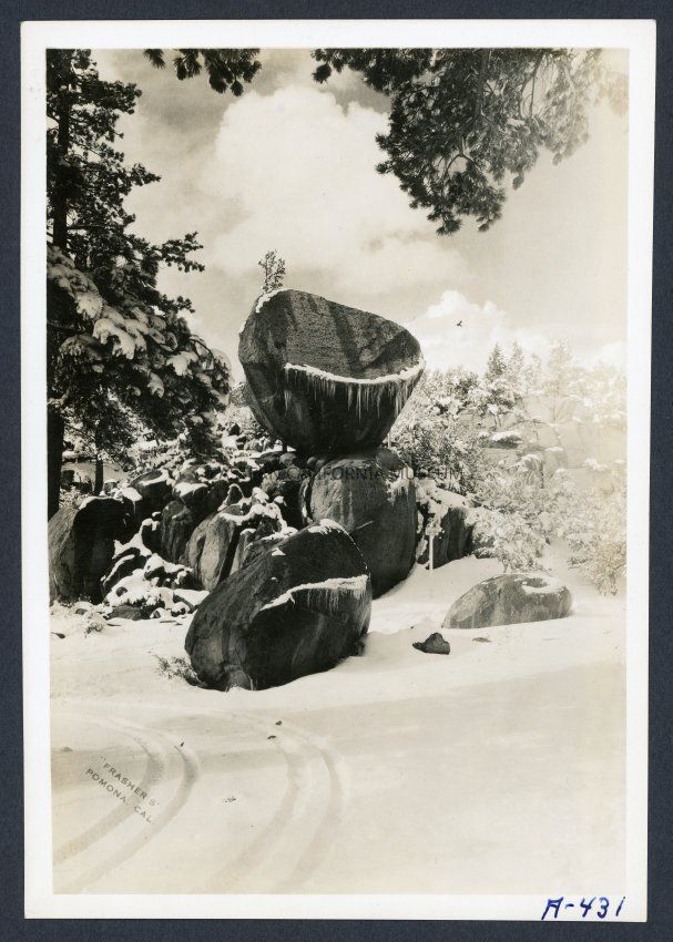 [No label, but it is described in the inventory as "Perched boulder winter."] Frashers Pomona Cal. A-431
