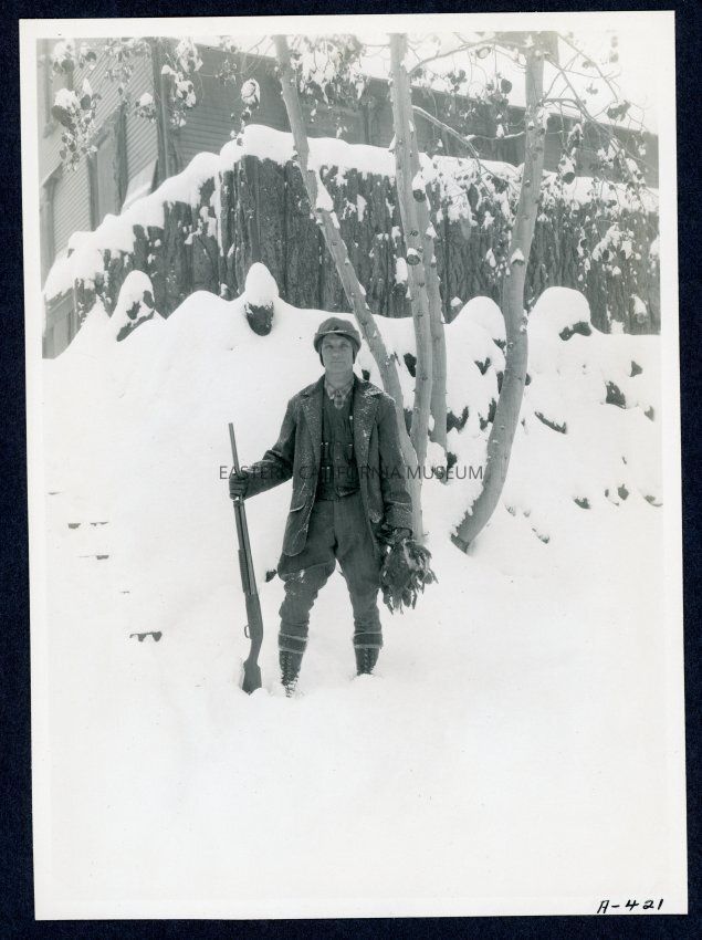 [No label, but it is described in the inventory as "Man rifle cabin in winter."] [No label] A-421