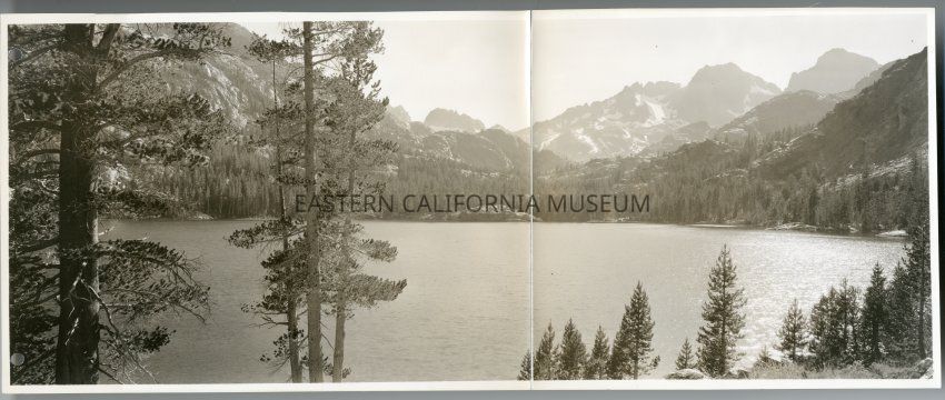 This is a panorama printed on two sheets with cloth backing. Underneath the cloth backing is "7-450." This photo is of a lake.