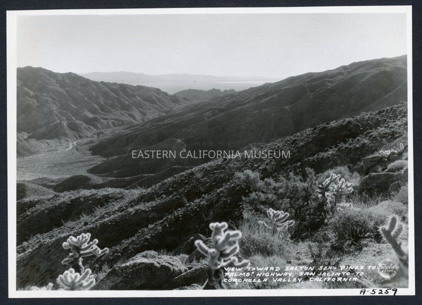 View Toward Salton Sea "Pines to Palms" Highway San Jacinto to Coachella Valley California Copyright Frashers Fotos Pomona Calif. A-5259