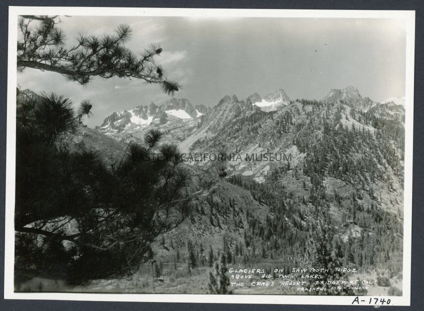 Glaciers on Sawtooth Ridge above Big Twin Lakes the Crags Resort Bridgeport Calif. Frashers Foto Pomona A-1740