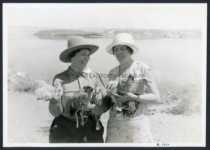 [No label, and it seems to have been skipped in the inventory.] [No label] A-1620 This is a photo of two women holding sea gulls at Mono Lake. The one on the left may be Mrs. Frasher.