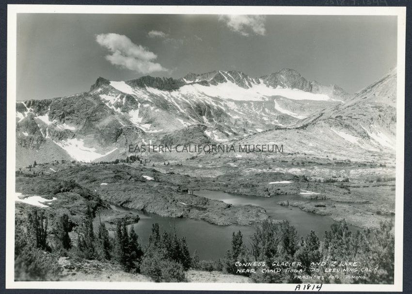 Conness Glacier and Z Lake near Camp Tioga P.O. Lee Vining Calif. Frashers Foto Pomona A-1814