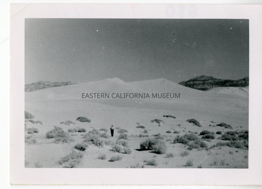 Reverse: Handwritten in blue ink: See me in Eureka Sand Dunes. Last Chance Range in back of dunes. Oct '57.Collection