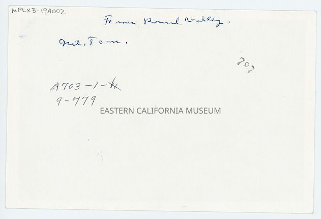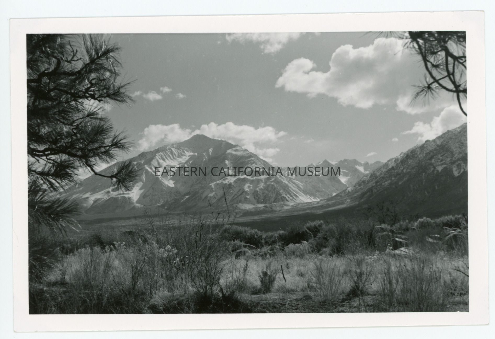 Photo of Mt. Tom. Snow on mountain, but not in the foreground. Handwritten in blue ink on reverse: From Round Valley. Mt. Tom.