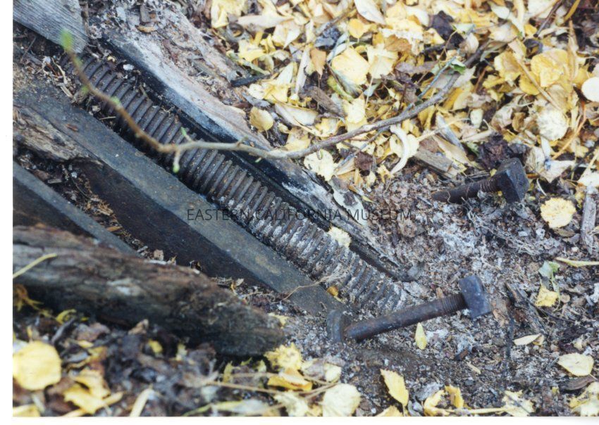 Color. Rusted metal screw and bolts, evidence of the logging operation in the Sawmill Creek area.