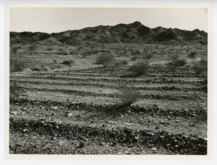 Label on reverse: Unexplained prehistoric rock windrows near highway west of Neeles. 1938.