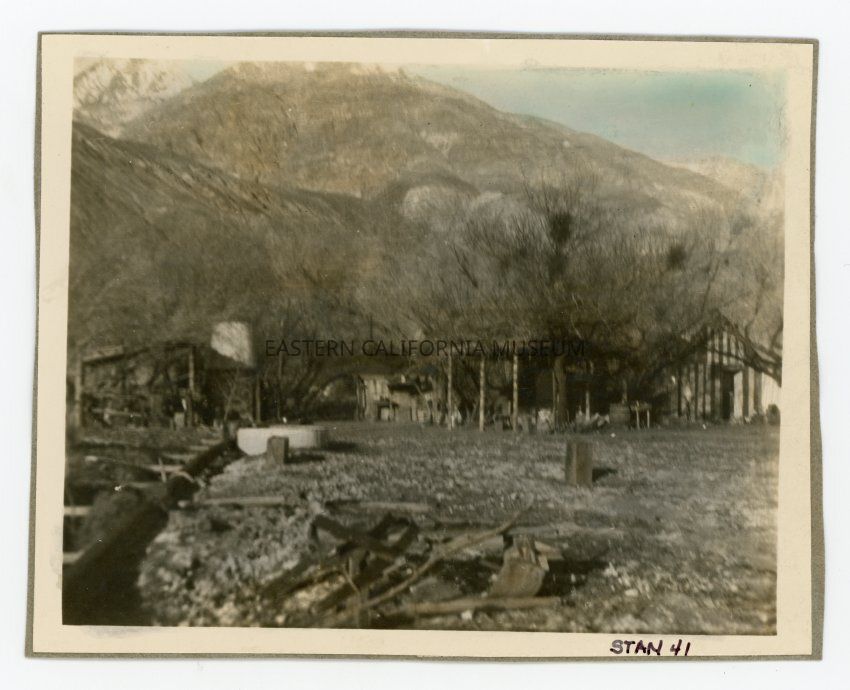 Tinted photo of a Saline Valley Salt Tram construction crew camp on the west side of the salt lake in Saline Valley.Collection