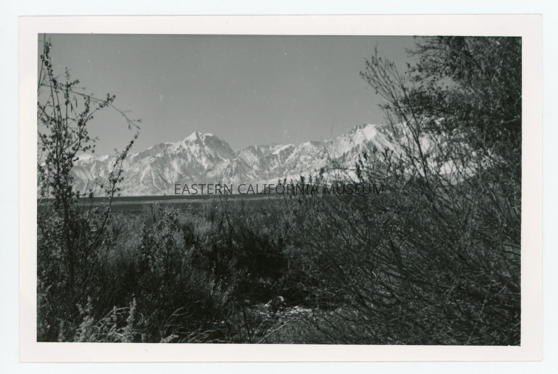 Handwritten in blue ink on reverse: From Fish Hatchery Road. Left: Mt. Williamson. Right: Mt. Bradley.
