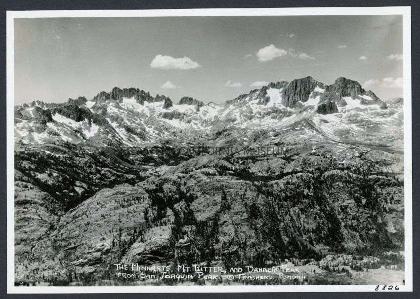 The Minarets Mt. Ritter and Banner Peak From San Joaquin Peak Copyright Frashers Pomona 8826
