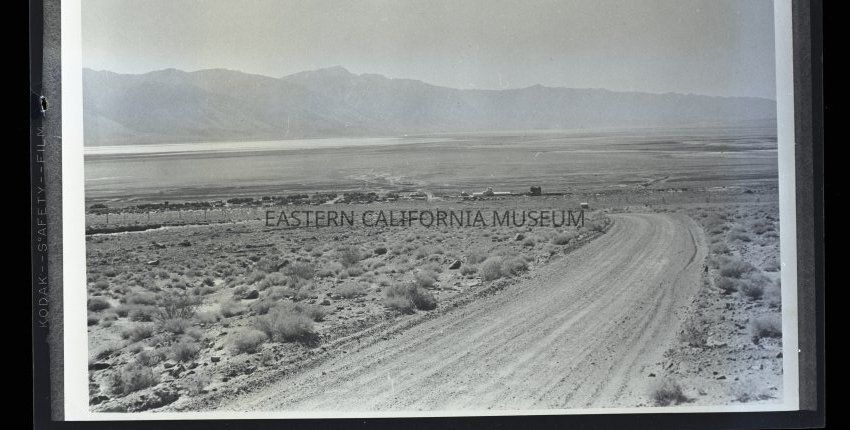 Photo of the view looking west from the Yellow Grade Road from Cerro Gordo toward Keeler. Photo copied courtesy of L. Hilderman in 1958.