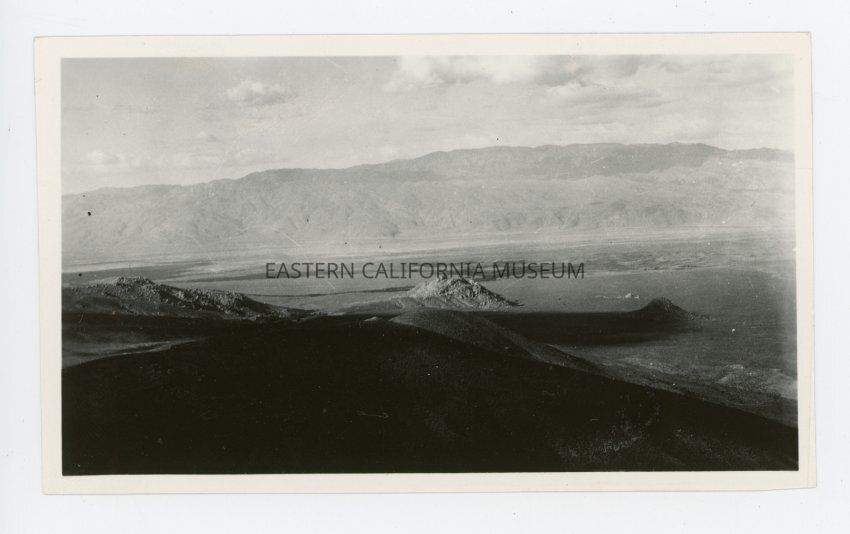 Photo taken from a high vantage point looking down at the Owens Valley and the Inyo Mountains.