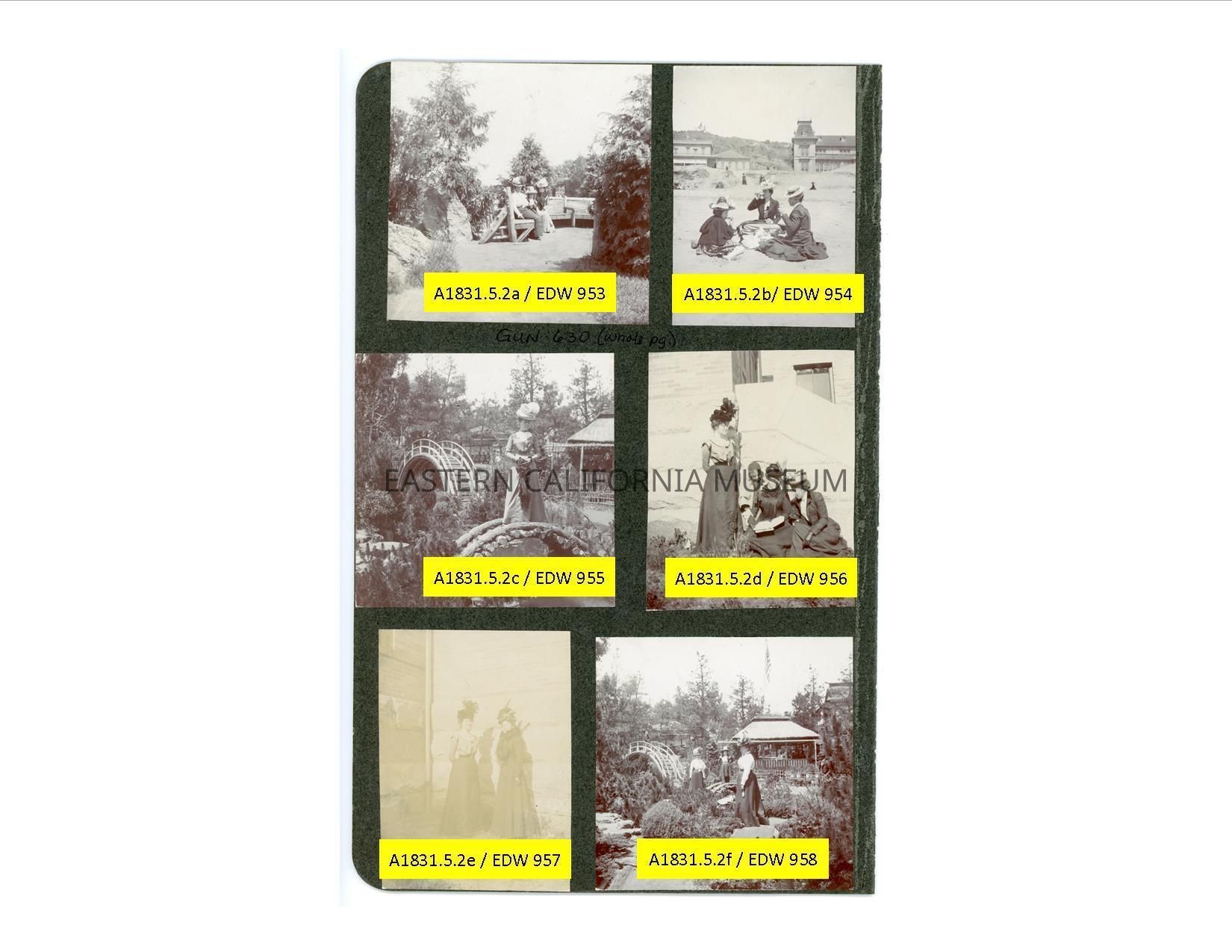 A1831.5.2b: Exterior photo of two women and a young girl sitting on the sandy beach. There are buildings (hotels?) in the background. Same photo as A1831.1.26c which gives more information: Helen Gunn, Dora (Shepherd?), and possibly Sadie Mulholland in San Francisco, 1898.