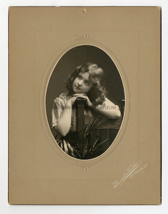 Mounted oval photograph of Helen Gunn about 1890 or 1891 when she was 10 or 11 years old. Photographed by Blauert and Widder of San Francisco.Made/Created