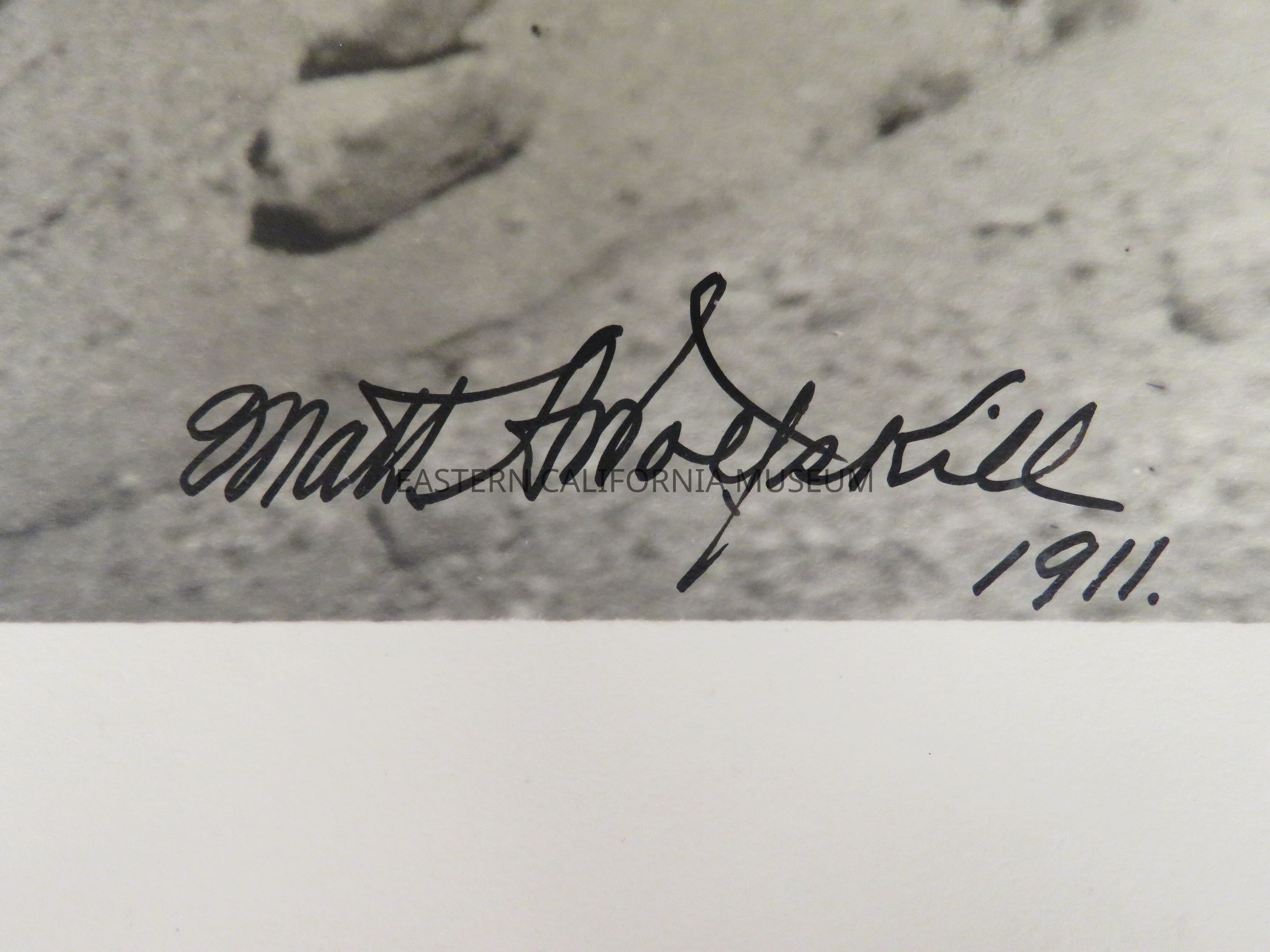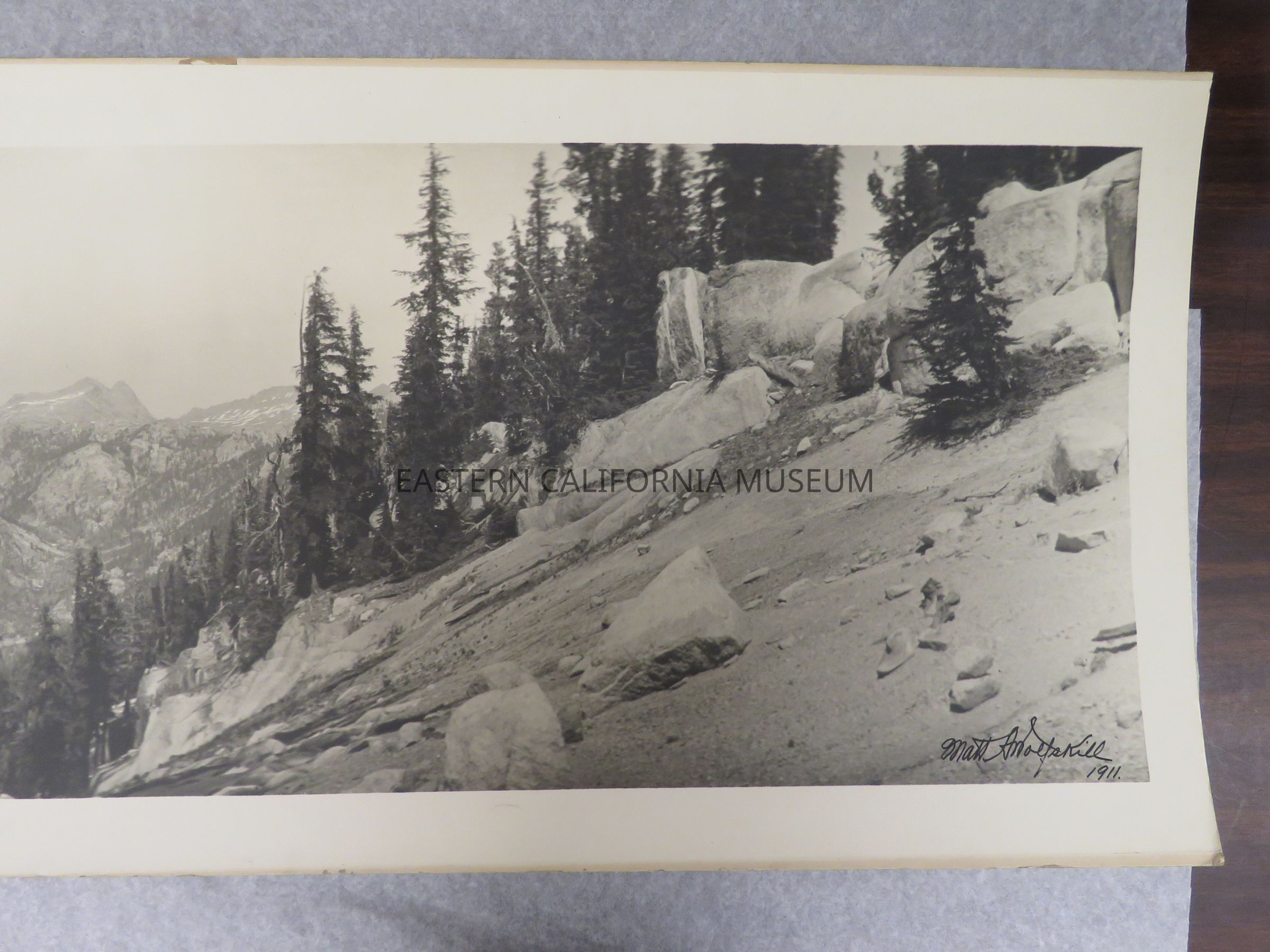 Photo of an unknown location, maybe the Kern Canyon area. Signed by Matt. A. Wolfskill, 1911.