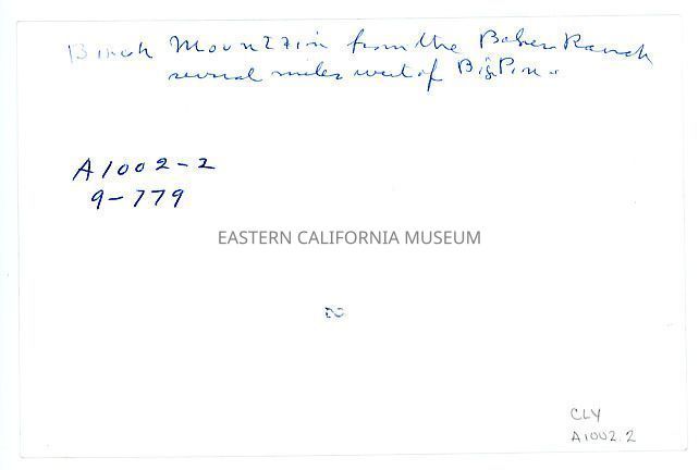 Written in blue ink on reverse: Birch Mountain from the Baker Ranch several miles west of Big Pine.Collection