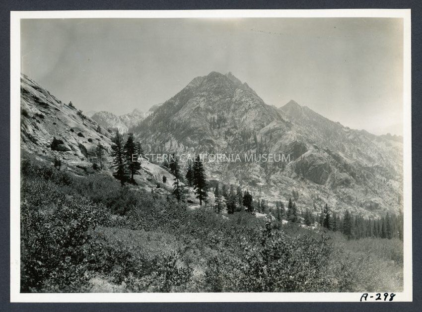 [No label] [No label] A-298 Photograph is of a mountain and sloping hillside with rocks, trees, and shrubs.
