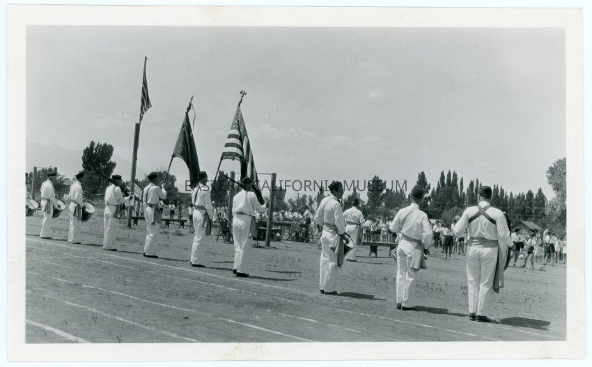 Photograph of a color guard at a school event in Big Pine, CA