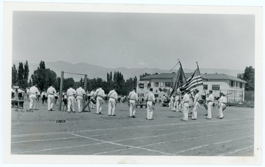 Photograph of a color guard at a school event in Big Pine, CA