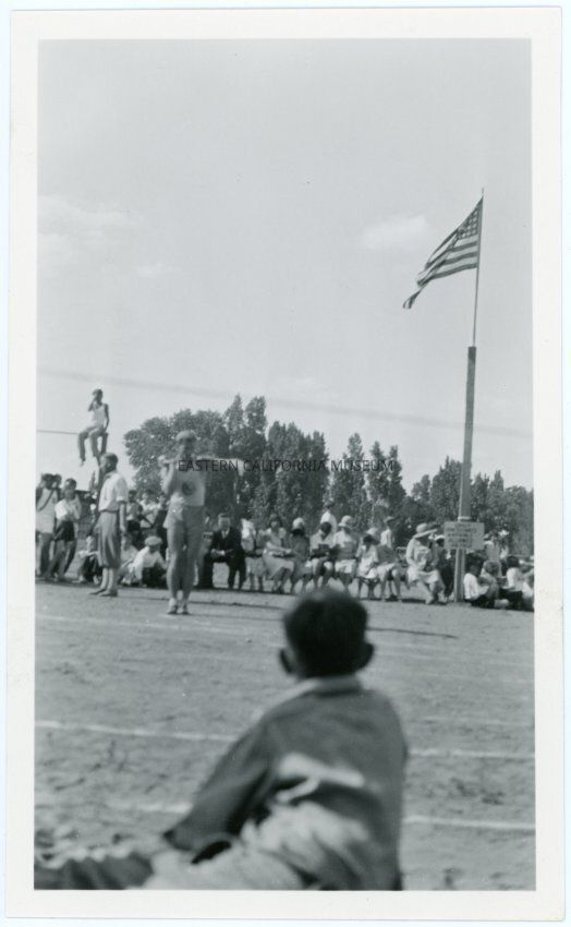 Photograph of a track and field event, appears to be shotput, in Big Pine, CA