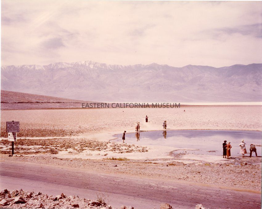 Color photo of Bad Water Basin in Death Valley with Telescope Peak looming in the background.