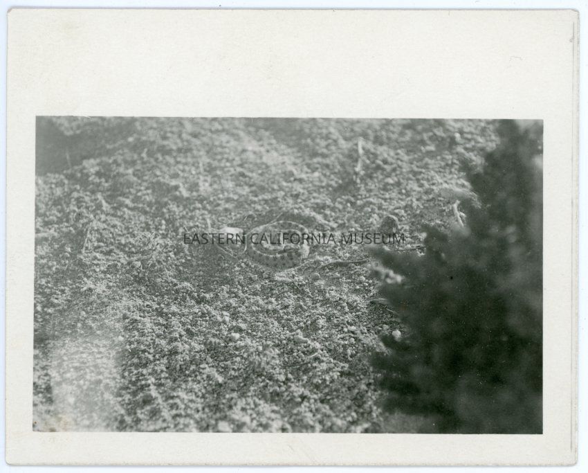 From the back of the photograph: "Sidewinder near Barstow; Look at this with reading glass" From the envelope: "Snakes"