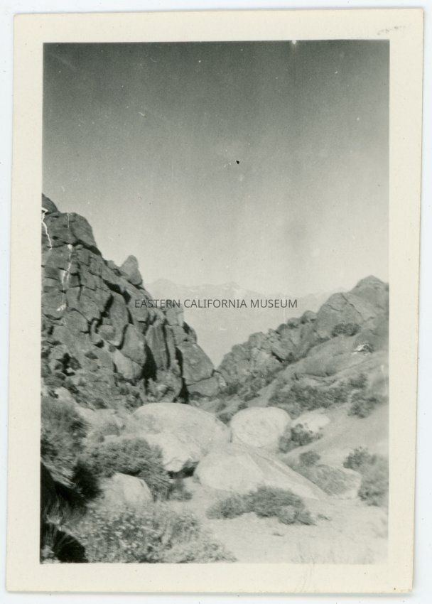 Photo of a rocky landscape with mountains in the far distance. From the envelope: "Unidentified Photo"