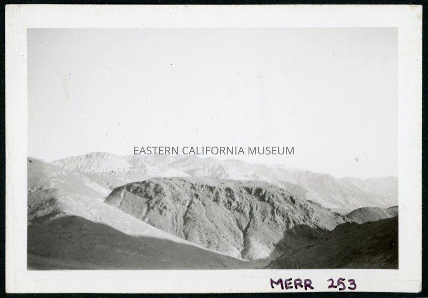 Photograph of unknown landscape in Death Valley National Park. Hills and mountains are visible.Collection