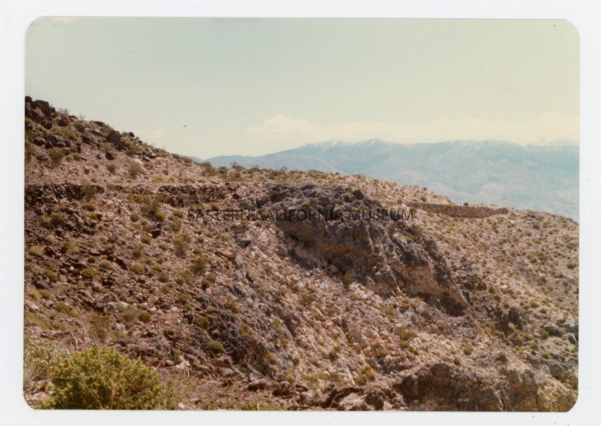 Information from accession paperwork: Collection of photos of the old stage and freight road and retaining wall in Stone Canyon in the Argus Range that led into the Panamint Valley. Photo taken near the Modoc (Calero Puro) Mine. Chinese laborers built the retaining wall circa 1875.Collection