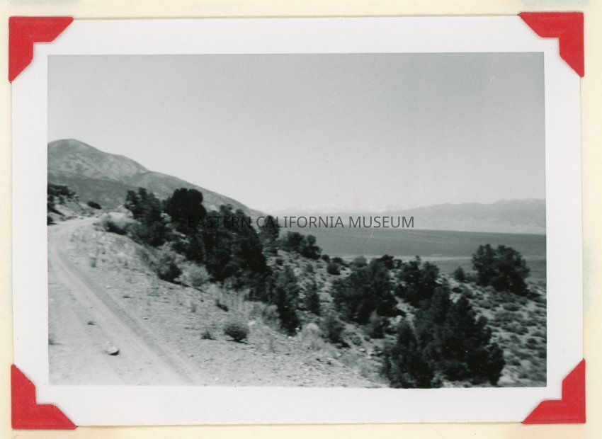 Photo of the abandoned right of way along the Southern Pacific narrow gauge track over Montgomery Pass, near the tunnel. Photo taken in 1957 by W. P. Payne.