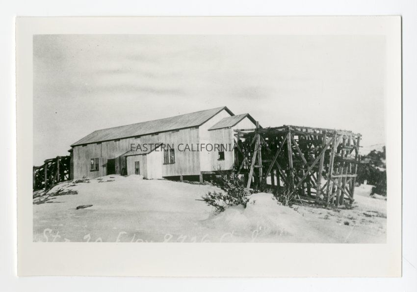 Photo of the summit station of the Saline Valley Salt Co. aerial tramway. The caption at the bottom has been cut off, but it may say, "Sta. 20, Elev. 8,726' C. S."Collection