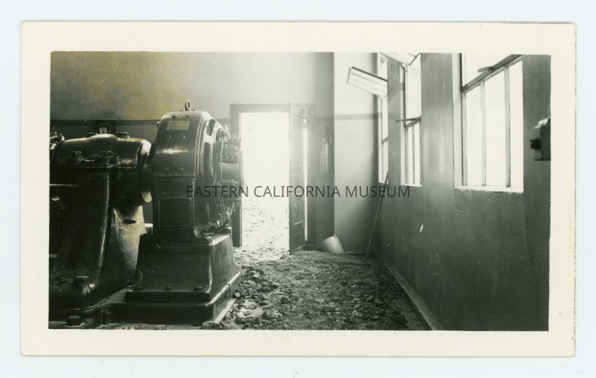 Photo of flood damage to power equipment inside the power house in the Owens River Gorge. Photo likely taken by a LADWP employee.