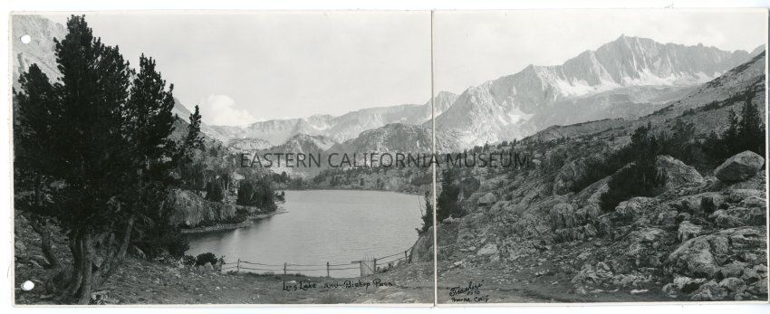 Long Lake and Bishop Pass Frashers Foto 7-543 This is a panorama printed on two sheets with cloth backing. Stamped on back is "Frasher's, June Lake and Pomona, Calif. #7-543."