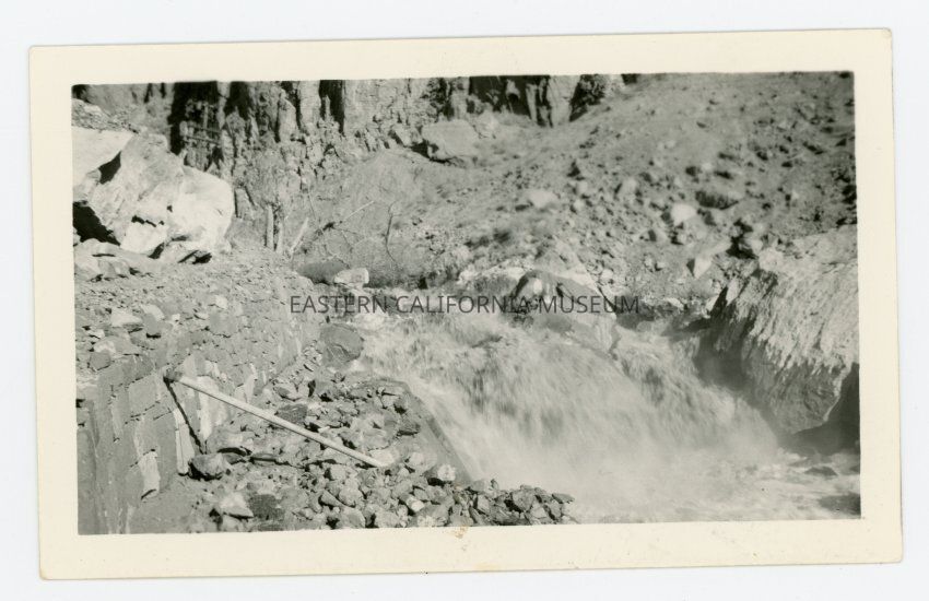Photo of flood damage in the Owens River Gorge. Photo likely taken by a LADWP employee.