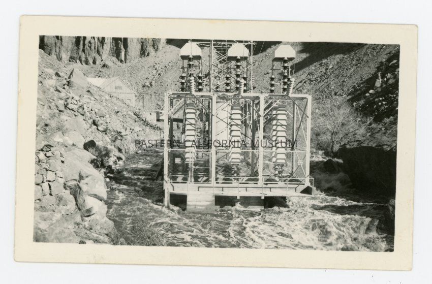Photo of flood damage to power equipment in the Owens River Gorge. Photo likely taken by a LADWP employee.