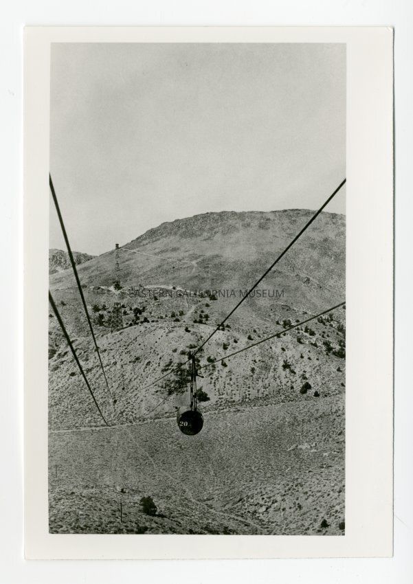 Photo taken looking down the Saline Valley Salt Co. aerial tramway cables at salt bucket #20.Collection