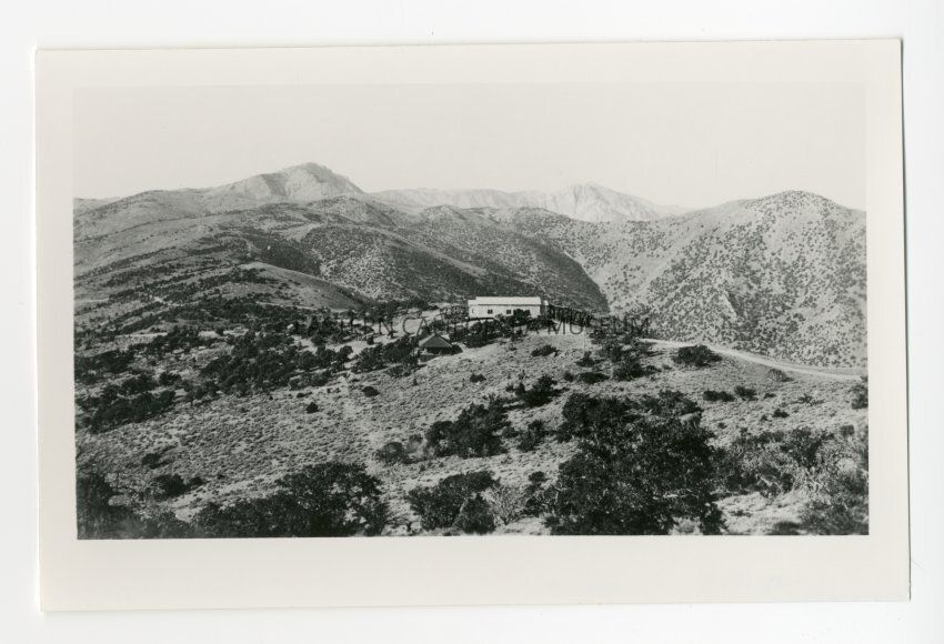 Photo of the summit station of the Saline Valley Salt Co. aerial tramway. There appears to be a house or structure below and to the left of the station.Collection