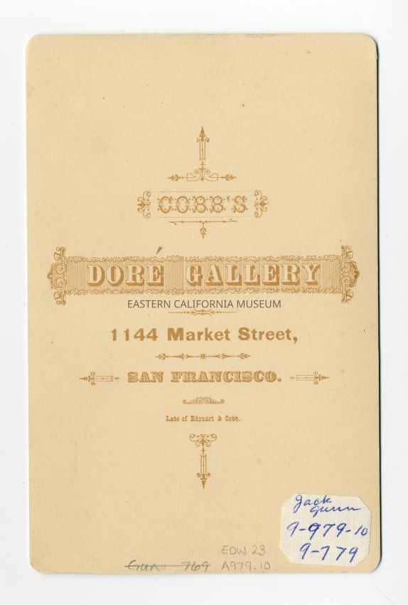 Mounted photograph of Jack Gunn. Photograph by Cobb's Dore Gallery of San Francisco.